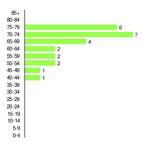 | Жителей | 402 | 386 | 279 | 97 | 52 | 53 | 29 | 25 |