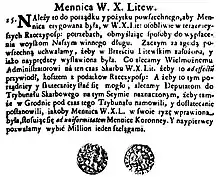 Сейм 1659 года принял решение о создании Брестского монетного двора для выпуска неполноценных медных солидов «Да будет ведомо всем, что Менница будет установлена в Великом Княжестве Литовском на нынешние Речи Посполитой потребы выплаты войскам нашим долга. Посему, со всеобщего согласия сейм постановляет, дабы в Бресте Литовском заложена и успешно установлена была»[1]. Тит Ливий Боратини заключил контракт на выпуск 180 миллионов солидов. Для этих целей в течение 1660—1666 были открыты монетные дворы в Уяздове (1660), Оливе (1663), Вильно (1664), Ковно (1665) и в Мальборке (1666).