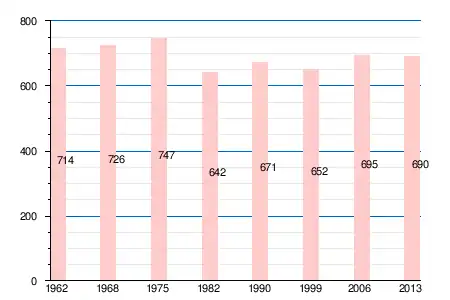 Население коммуны в 2011 году составляло 696 человек[6], в 2012 году — 693 человека[7], а в 2013-м — 690 человек[5].