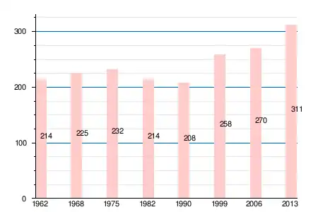Население коммуны в 2011 году составляло 312 человек[6], в 2012 году — 312 человек[7], а в 2013-м — 311 человек[5].