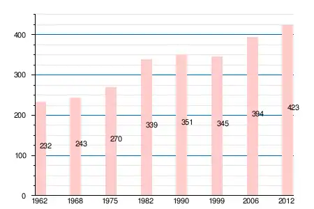 | 232 | 243 | 270 | 339 | 351 | 345 | 394 | 420 | 423 |