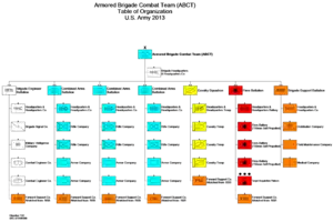 Бронетанковая бригада (Armoured Brigade Combat Team (ABCT)) — основа бронетанковых сил армии. Она состоит из смешанных батальонов, чьё вооружение состоит из танков «Абрамс» и бронемашин на платформе «Брэдли». Прочие машины типа Хамви используются в вспомогательных целях.[2]