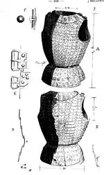 Поздняя бригантина из мелких пластин с двумя крупными пластинами на груди (конец XV века —- начало XVI века)