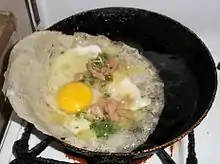 На тарелку укладывается лист мальсука, посередине на него помещается немного начинки и туда же вливается сырое яйцо. Лист теста складывается вдвое, тарелка подносится к сковороде с сильно нагретым растительным маслом и брик в него скатывается. Затем тесто переворачивается и обжаривается с другой стороны.