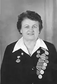 Позже, перейдя линию фронта, стала бойцом РККА. Войну закончила в звании сержанта, командиром отделения связи.