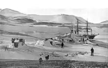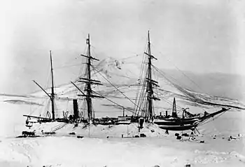 ![]() Экспедиционное судно — барк «Дискавери» на зимовке | |