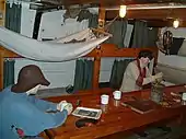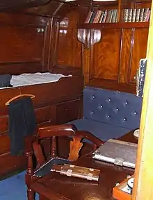 Для команды постарались создать максимально комфортабельные условия жизни на судне. Офицеры и учёные получили одноместные каюты, выходящие в кают-компанию; все эти помещения были отделаны красным деревом. В каждой из кают имелись койка, комод, платяной шкаф, письменный стол и книжные полки. В кают-компании располагалась угольная печь, тепло от которой через дверные проёмы отапливало каюты. Для развлечения имелась механическая пианола, для которой было предусмотрено более 100 валиков с различными мелодиями[82].