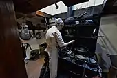 В условиях антарктической зимы вскрылась масса недостатков жилых помещений: например, была плохая вентиляция — либо сквозняк, либо духота. Печи дымили, а стены и подволок кают-компании были тонкими и плохо изолированными. В каютах накапливался конденсат, а Э. Уилсон писал, что над его койкой нарастали сосульки и «ледяные сталагмиты»[83]. Кают-компания офицеров располагалась над топливным бункером, из-за чего угольная пыль постоянно проникала в помещения. Классовые различия викторианской эпохи сохранялись при размещении команды: офицеры и учёные жили отдельно от боцманата и матросов. Кают-компания и общие кубрики матросов были менее изысканно обставлены, но теплее, чем офицерские. Рядовые спали в гамаках, которые убирались на день, обеспечивая достаточное пространство. Исключительным богатством отличалась судовая библиотека, включавшая несколько тысяч томов, к которым имел доступ весь экипаж; однако отдельного помещения для книг не было, и они размещались в кают-компаниях и офицерских каютах. Много книг было подарено спонсорами и издательствами в рекламных целях. Однако Р. Хантфорд критиковал подбор литературы, где преобладала беллетристика и соседствовали средневековые фантазии Джона Мандевиля и «Ледяной сфинкс» Жюля Верна, но не было «„Фрама“ в полярном море» Нансена. Камбуз непосредственно соседствовал с жилыми помещениями и должен был служить дополнительным средством отопления, однако распространял кухонный чад повсюду. Там же располагался бункер для таяния снега и льда и опреснительный аппарат для морских переходов[84][85].