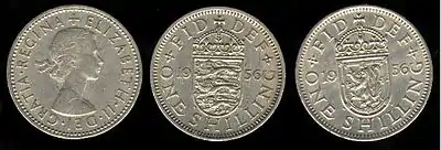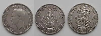 Во времена правления Георга VI и Елизаветы II выпускали два различных типа шиллинга, различавшиеся реверсами: в английском и шотландском варианте. В 1949 году с монеты исчезли слова IND. IMP. — после того как Индия провозгласила независимость.