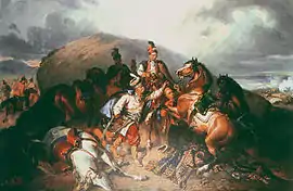 - Ян II Казимир во время битвы под Берестечком (совместно с Ю. Коссаком, 1854)