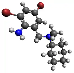 Бромгекси́н (лат. bromhexinum) — лекарственный препарат, оказывающий непрямое муколитическое (секретолитическое), отхаркивающее и противокашлевое действие. Улучшает проходимость дыхательных путей. Применяется при бронхитах, бронхиальной астме, туберкулёзе и других заболеваниях. Используется как в монотерапии, так и в составе комплексного лечения, в том числе входит в комплексные препараты. Относится к международным непатентованным наименованиям.