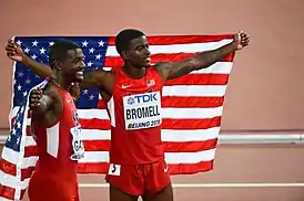 ![]() Трэйвон Бромелл (справа) и Джастин Гэтлин на чемпионате мира 2015 | ||||||||||||||