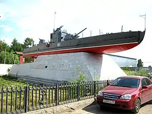 В 1974 году по инициативе директора завода Ивана Павловича Тимофеева, катер № 181, участвовавший в боевых действиях на реках Волга, Днепр, Дунай, Амур, был доставлен на завод, отремонтирован и установлен на пьедестал 9 мая 1975 года.