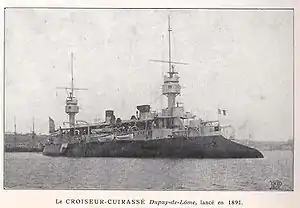 К сожалению для французов, крейсер оказался даже чересчур прогрессивной конструкции, что привело к затяжке строительства на 7 лет[38]. В итоге, «Дюпюи-де-Лом», заложенный в 1888 году, вступил в строй только в 1895 году. Недостатков тоже хватало. Скорость оказалась ниже заданных 20 узлов, а экипаж страдал от чрезмерной тесноты[39]. Главным же недостатком корабля, по мнению французских политиков, стала высокая стоимость, тем более, в планах была постройка до 200 броненосных крейсеров[34]. Поэтому следующие корабли этого класса были существенно ужаты в размерах.