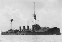 В 1890-х годах интерес к броненосным крейсерам начал проявлять и стремительно растущий флот Германской империи. При этом процесс развития броненосных крейсеров в германском флоте проходил в отсутствие чёткой концепции их боевого применения, что приводило к странным и неоправданным решениям[54]. Термин «броненосный крейсер» в немецкой классификации отсутствовал[55]. Вместо него употреблялся термин «большой крейсер» (нем. Große Kreuzer), куда входили все крейсера с артиллерией главного калибра 210-240-мм, например бронепалубные крейсера типа «Фрейя»[56].
