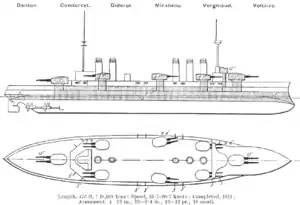 Всего в 1906—1911 годах было построено шесть кораблей типа «Дантон». Выбор французского флота в пользу строительства ещё одной серии броненосцев объяснялся экономией средств и меньшей на тот момент рискованностью подобного решения, однако успех линкоров дредноутного типа и переход других стран к их строительству сделал броненосцы типа «Дантон» устаревшими ещё до вступления в строй. Корабли этой серии являлись одними из мощнейших эскадренных броненосцев в мире, по мощности артиллерийского вооружения сравнимыми с ранними дредноутами, хотя проблематичность контроля стрельбы смешанной артиллерии крупного калибра в значительной мере сводила на нет это достоинство.