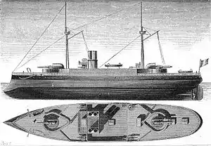 Франко-прусская война 1870—1871 года стала хорошим уроком для французского флота. Строившийся из расчета на ведение войны в открытом море против Великобритании, французский флот не учел специфичных требований к действиям на мелководьях германского побережья и как следствие — всю войну оставался в бездействии, ограничиваясь поддержанием блокады немецких портов.