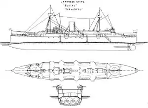 «Такачихо» принял участие в Первой мировой войне. В ходе осады Циндао крейсер был торпедирован немецким миноносцем S-90 и погиб, став самым крупным кораблём, потерянным Японией в Первой мировой войне по боевым причинам.
