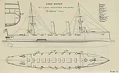 - World War 1 Naval Combat. Eclipse Class Second Class Protected Cruisers. Дата обращения: 4 февраля 2007. Архивировано 13 мая 2012 года.