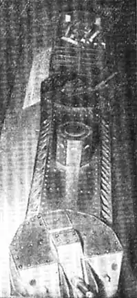 Орудийная башня из нижней неподвижной и верхней вращающейся частей. Поворотный механизм разворачивал верхнюю часть со скоростью 9 градусов в секунду (поворотный механизм орудия до установки в башню только 3,6 градуса в секунду). Зенитные орудия на своих лафетах.