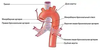 Обычно имеются три главные бронхиальные артерии: одна справа, и две - слева[3].