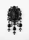 Траурные броши | Траурные украшения известны с древности, но особую популярность приобрели в XVIII и во второй половине XIX века, в викторианскую эпоху. Траурные украшения носились во время траура, изготавливались из определённых материалов (гагат, чёрное стекло, чёрная и белая эмаль, жемчуг, гранаты) и должны были содержать какое-нибудь напоминание о покойном: его инициалы, надпись на латыни, портрет усопшего. Особенно популярны были траурные броши со вставкой из плетёных волос покойного. |