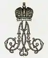 Фрейлинский шифр | Особый знак в виде вензеля, как правило золотой и усыпанный бриллиантами, который носили фрейлины при русском императорском дворе. Шифры имели форму инициалов императрицы или двух императриц. Знак носили на банте цвета Андреевской голубой ленты, прикрепляя к платью на левой стороне корсажа. |