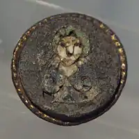 | Медь, стекловидная эмаль, суглинок. 3 × 3 см | |