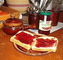 Брусничный джем — традиционное лакомство в Швеции и других скандинавских странах. Хотя настоящий джем не требует варки, недорогие коммерческие марки не только подвергаются тепловой обработке, но и содержат разнообразные добавки наподобие пектина и яблок.