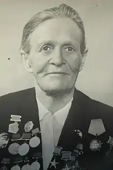 - Отмечена в мемориале Герои Социалистического Труда Крыма на Набережной в Симферополе.