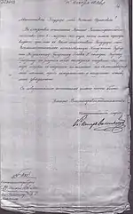 - Дело по отношению Белорусского генерал-губернатора, о награждении Калужской губернии козельского городского главу второй гильдии купца Дмитрия Брюзгина, золотой медалью на Александровской ленте