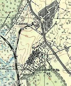 БРЮМБЕЛЬ — деревня графини Зубовой, 10 вёрст по почтовой дороге, а остальное по просёлкам, число дворов — 19, число душ — 58 м. п. (1856 год)[7]