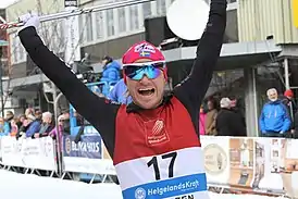 Использует лыжи производства фирмы Fischer, ботинки и крепления Salomon.