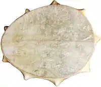 — Народный или этнический, деревянный обод с натянутой кожаной мембраной. В зависимости от предназначения бубны бывают всевозможных размеров. Инструменты этого типа используются в различных ритуальных целях, в том числе и шаманами. В их конструкции могут быть небольшие бубенчики, привязанные к проволоке, протянутой под мембраной.