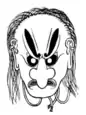 - по материалу, из которого они сделаны, — камэн (деревянные маски, таких большинство) и дзомэн (маски из ткани или бумаги)[38];