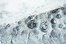 Наледные бугры (гидролакколиты) также представляют собой выпуклые части наледных массивов, образовавшихся, в частности, в результате пучения льда или замерзания излившихся на поверхность грунтовых вод через ослабленные участки деятельного слоя[11]. Такие гидролакколиты и бугры имеют часто сезонный характер (Юго-Восточный Алтай), в субполярных и полярных условиях они способны существовать много лет.