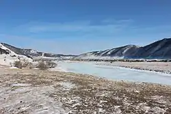В устье реки расположен посёлок Бугульдейка[2], в среднем течении — село Косая Степь и деревня Алагуй[7]. Основной приток — река Куртун (правый).