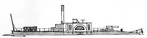 Колёсный пароход водоизмещением 48 тонн. Длина парохода составляла 33,53 метра, ширина — 5,3 метра, осадка — 0,41 метра. На пароходе была установлена паровая машина мощностью 30 номинальных л. с. Вооружение судна состояло из одного 24-фунтового орудия и двух 1-фунтовых пушек на вертлюгах[1].