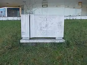 ![]() Памятный знак в районе станции Будапешт-Дели, где венгерские добровольцы в начале февраля 1945 года приняли боевое крещение. | |