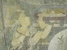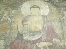 На фреске изображён Будда Медицины (Бхайшаджьягуру) и два бодхисаттвы, держащие символы солнца и луны[3]. Бхайшаджьягуру почитается как Будда Медицины, как физической, так и духовной[3]