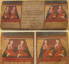 Есть также несколько уникальных оригинальных текстов, таких как Милиндапаньха (буквально «Вопросы Милинды») и его китайский аналог Нагасена Бхикшу Сутра (кит. 那先比丘經).[41] Эти тексты описывают диалог между монахом Нагасеной и индо-греческим царем Менандром (пали Milinda). Это сборник доктрин, охватывающий широкий круг вопросов.