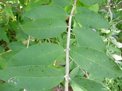 Листья — овально-ланцетовидные, заострённые на концах, достигают в длину 25 см.