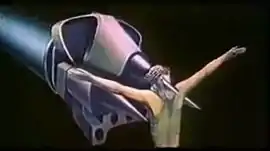 ![]() Робот, охотясь за влетевшей в дом чайкой, протыкает распятие Иисуса Христа (кадр из мультфильма) | |