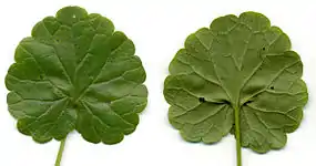 Слева направо: Цветок и лист будры плющевидной | ||||||||||