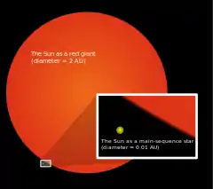 Самая быстрая часть расширения Солнца в красный гигант произойдёт на заключительном этапе, когда Солнцу будет приблизительно 12 миллиардов лет. Вполне вероятно, что, расширившись, Солнце поглотит Меркурий и Венеру, достигнув максимального радиуса 1,2 астрономической единицы[39].
