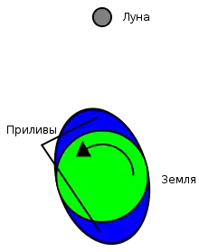 Приливное ускорение Луны замедляет скорость вращения Земли и увеличивает расстояние между Землёй и Луной. Другие эффекты, которые могут рассеять энергию вращения Земли — это трение между ядром и мантией, потоки в атмосфере, конвекция в мантии и климатические изменения, которые могут увеличить или уменьшить количество льда на полюсах. В совокупности эти эффекты, как предполагается, увеличат продолжительность дня более чем на 1,5 часа в течение ближайших 250 миллионов лет, а также увеличат наклон оси на полградуса. Расстояние до Луны увеличится примерно на 1,5 RЗемли в течение этого же периода[18].