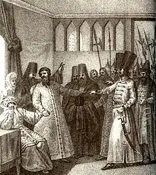 В лето 7118 (1610), июля в 19 день Рязанец дворянин Захарей Ляпунов да князь Петр Засекин с своими советники царя Василиа силою постригошя в чернеческий чин. Обещание же за царя отвещеваше князь Василей Туренин; и предашя под начало в Чюдов монастырь. И потом вскоре и царицу его Марию постригошя силою же и отдашя в Ивановской монастырь («Сказание Авраамия Палицына»).