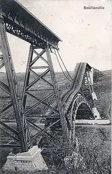 Железнодорожный мост в Буйонвиле, разрушенный во время Первой мировой войны. Почтовая карточка, датированная 11.3.1915.