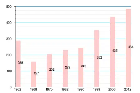 | 1962 | 1968 | 1975 | 1982 | 1990 | 1999 | 2006 | 2008 | 2011 | 2012 |