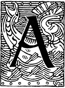 Герхард Мунте, буквица «A» из книги Сага об Олаве Трюггвасоне, Снорре Стурласон — Мировой тур, Дж. М. Стенерсен & Co, 1899 г.